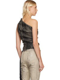 Foil-coated 10 oz stretch denim top. · Frayed edges throughout · ZDHC-certified denim · Single-shoulder and draped construction · Cropped hem · Zip closure at side seam · Logo-woven webbing strap at interior Supplier color: Black washed foil 91% cotton, 6% elastane, 3% rubber. Made in Italy 252126F111000