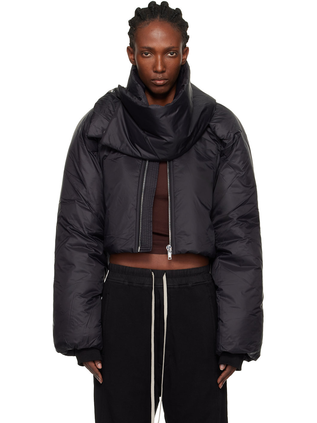 Insulated GRS-certified recycled nylon taffeta jacket. · Detachable scarf style panel at rib-knit stand collar · Zip closure · Press-stud vent at shoulders · Inset rib-knit cuffs · Webbing strap at back · Welt pockets at interior · Integrated logo-woven strap at interior · Full taffeta lining Supplier color: Black Body: 100% polyamide. Trim: 98% cotton, 2% elastane. Fill: 100% polyester. Made in Moldova 252126F061001