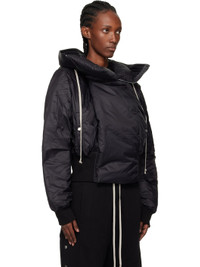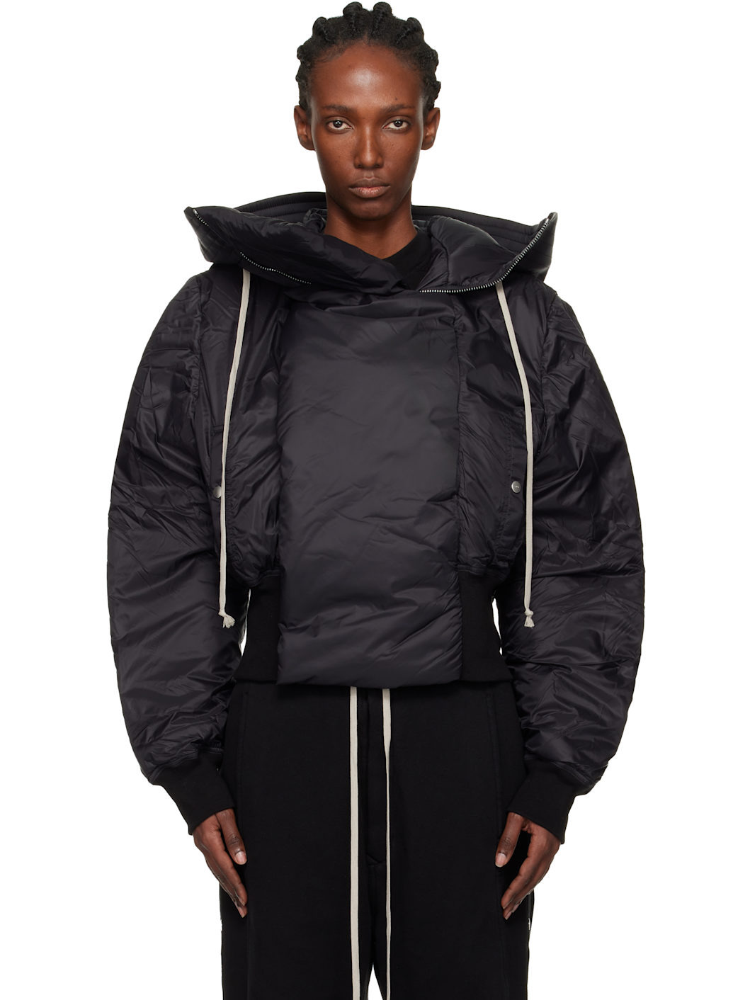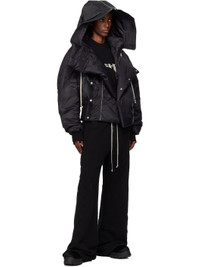 Insulated recycled nylon satin bomber jacket. · GRS-certified recycled nylon · Drawstring at hood · Quilted funnel neck · Zip closure extends to collar · Press-stud placket · Welt pockets at front · Rib-knit hem and cuffs · Welt pockets at interior · Full satin lining Supplier color: Black Body: 100% nylon. Trim: 98% cotton, 2% elastane. Fill: 100% polyester. Made in Italy 252126F058001
