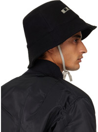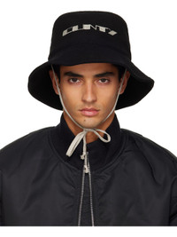 Padded felted organic cotton hat. · Text embroidered at face · Quilted brim · Extended webbing trim at interior · Plain-woven cotton lining Supplier color: Black/Pearl Body: 100% cotton. Trim: 100% polyester. Fill: 100% polyester. Lining: 100% cotton. Made in Italy 252126M140002
