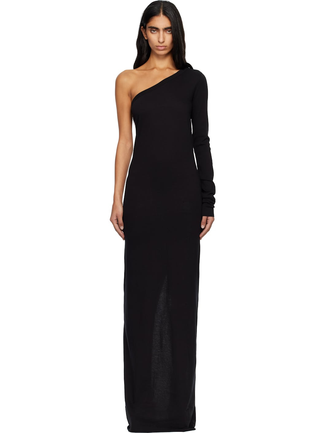 GOTS-certified organic cotton jersey maxi dress. · Garment-dyed · Single-shoulder construction · Rolled edge at hem · Central seam at back · Central slit at back hem · Integrated logo-woven strap at interior Supplier color: Black 100% organic cotton. Made in Italy 252126F055002