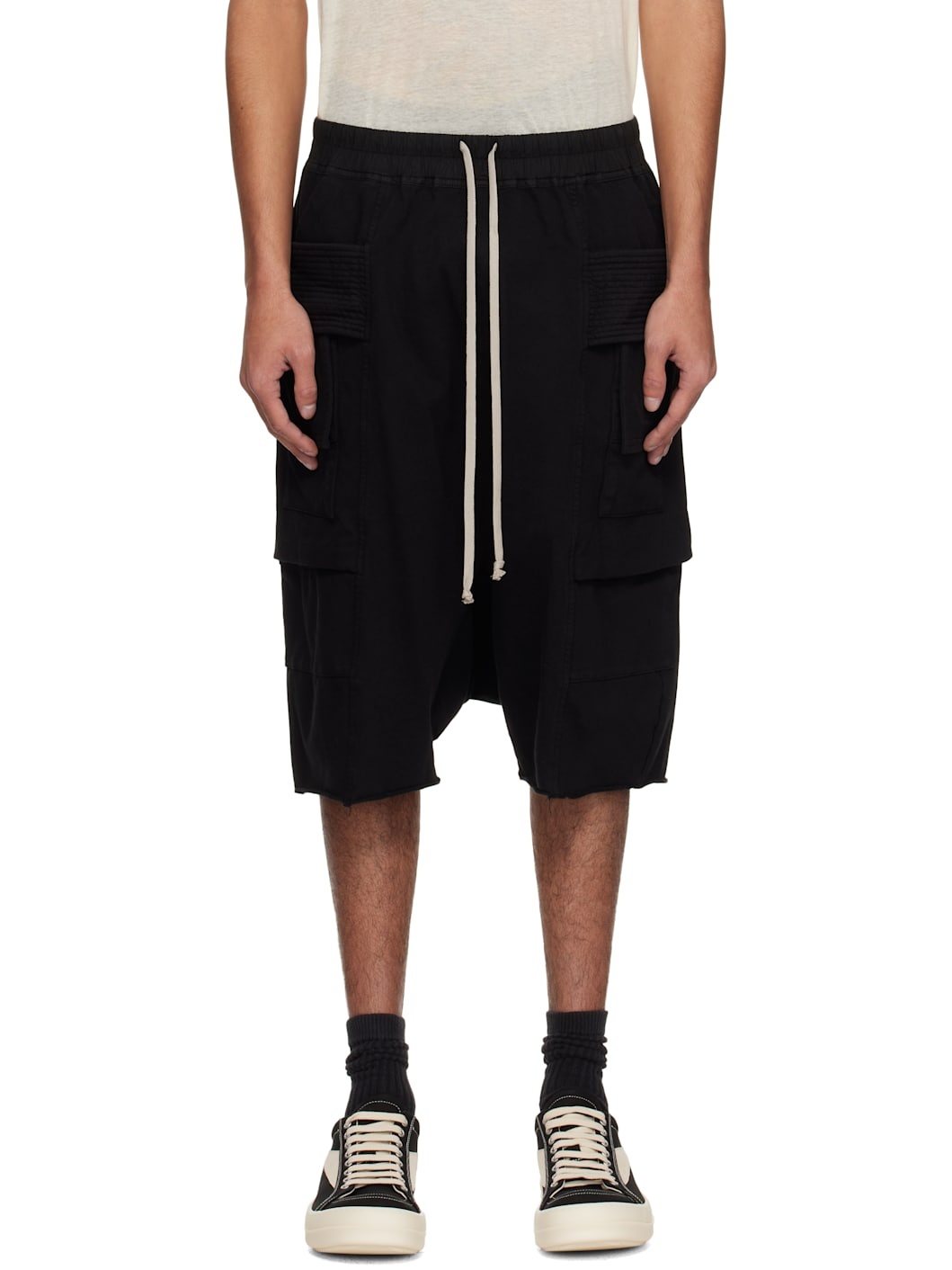 Black Hollywood Creatch Drawstring Cargo Shorts