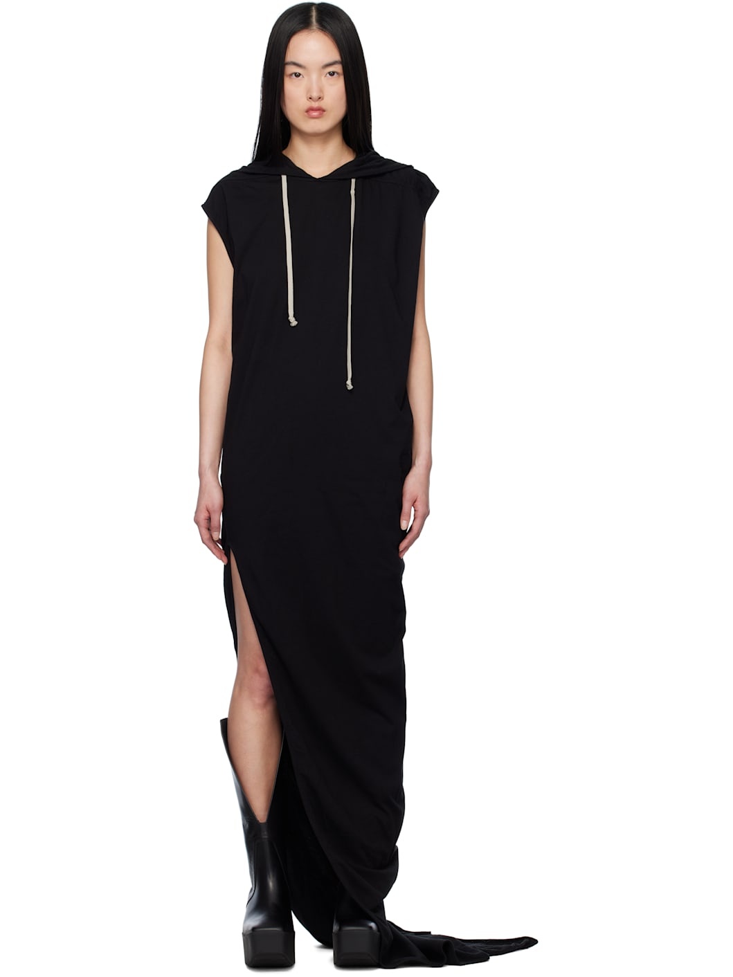 Garment-dyed organic cotton jersey maxi dress. · GOTS-certified cotton · Paneled construction · Drawstring at hood · Slit at side seam · Raw edge at asymmetric hem · Train at back · Integrated logo-woven webbing strap at interior Supplier color: Black 100% cotton. Made in Italy 251126F055006