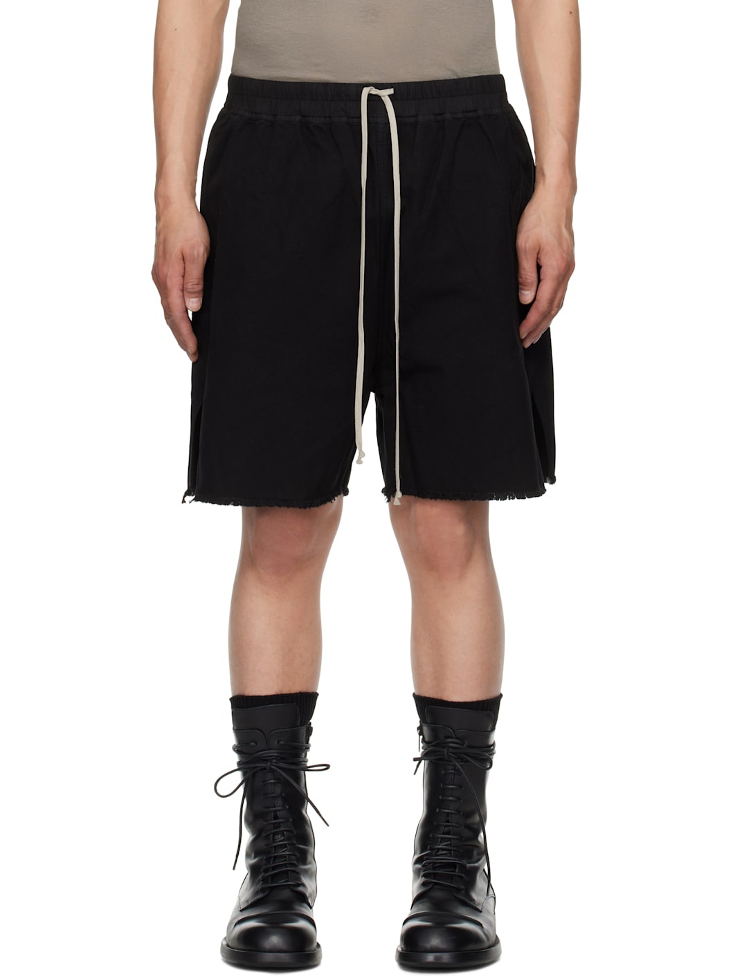 GOTS-certified organic cotton canvas shorts. · Garment-dyed · Loose-fit · Drawstring at elasticized waistband · Two-pocket styling · Frayed edge at cuffs · Vented outseams · Two-way zip vent at back Supplier color: Black Body: 100% organic cotton. Trim: 97% cotton, 3% rubber. Made in Italy 251126M193003