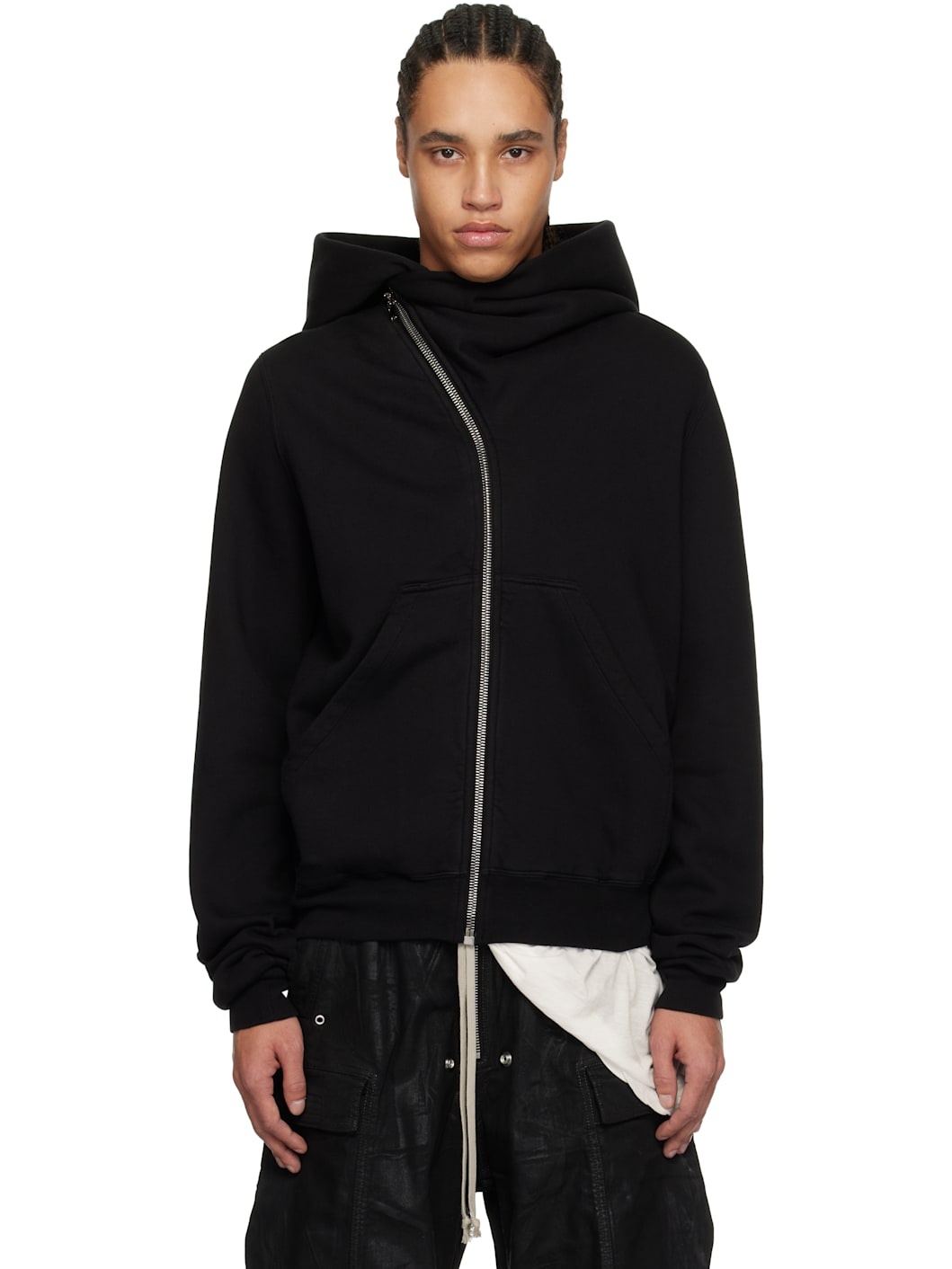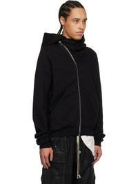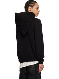 Heavyweight GOTS-certified organic cotton fleece hoodie. · Garment-dyed · Funnel neck · Offset zip closure · Patch pockets · Rib-knit hem and cuffs · Central seam at back · Integrated logo-woven strap at interior Supplier color: Black 100% organic cotton. Made in Italy 251126M202005
