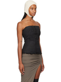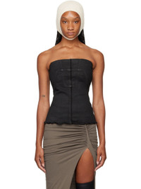 Lightweight overdyed and waxed stretch denim top. · Straight neck · Raw edge at front and hem · Zip closure at back · Exposed logo-woven webbing strap at side seam Supplier color: Black wax 91% cotton, 6% elastomultiester, 3% rubber. Made in Italy 242126F111000