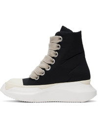 High-top padded GRS-certified recycled nylon- and GOTS-certified organic cotton-blend faille sneakers in black. · Faux-leather cap toe · Lace-up closure · Cotton twill lining · Sculptural foam rubber platform midsole · Treaded thermoplastic rubber sole · Platform: H2.5" Supplier color: Black/Pearl/Milk Upper: textile. Sole: thermoplastic rubber. Made in Italy 242126M236004