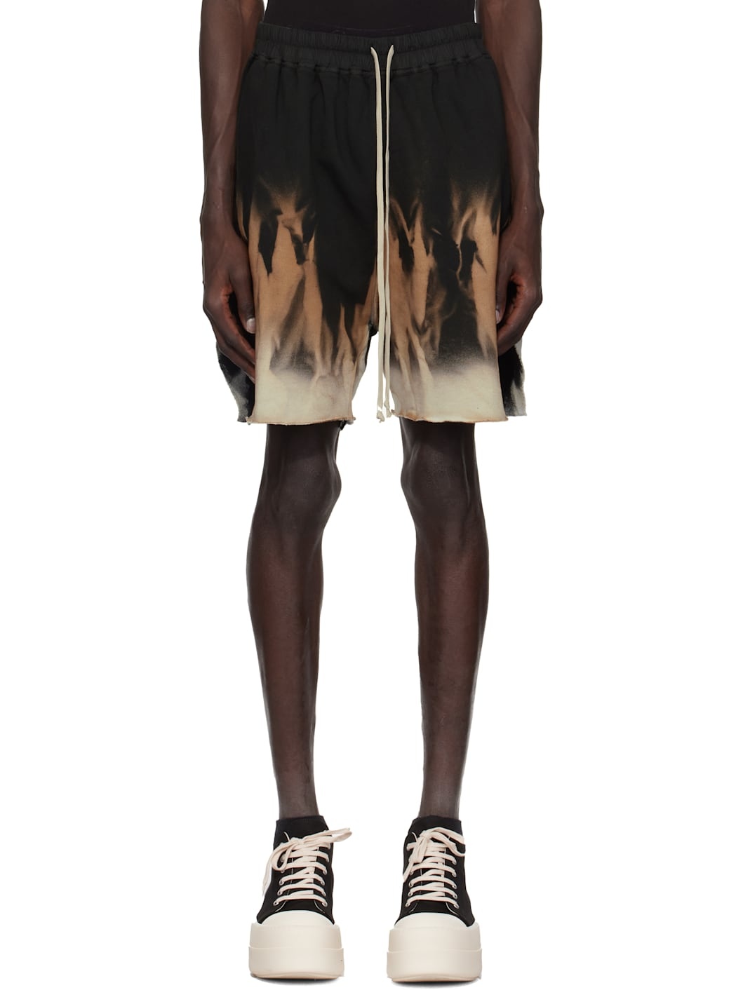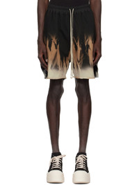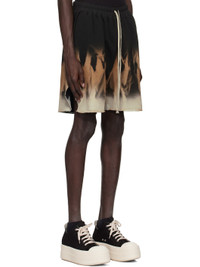 Loose-fit, heavyweight, and garment-dyed GOTS-certified organic cotton fleece shorts. Tie-dyed graphic throughout. · Drawstring at elasticized poplin waistband · Two-pocket styling · Raw edge at cuffs · Vented outseams Supplier color: Black/Terra