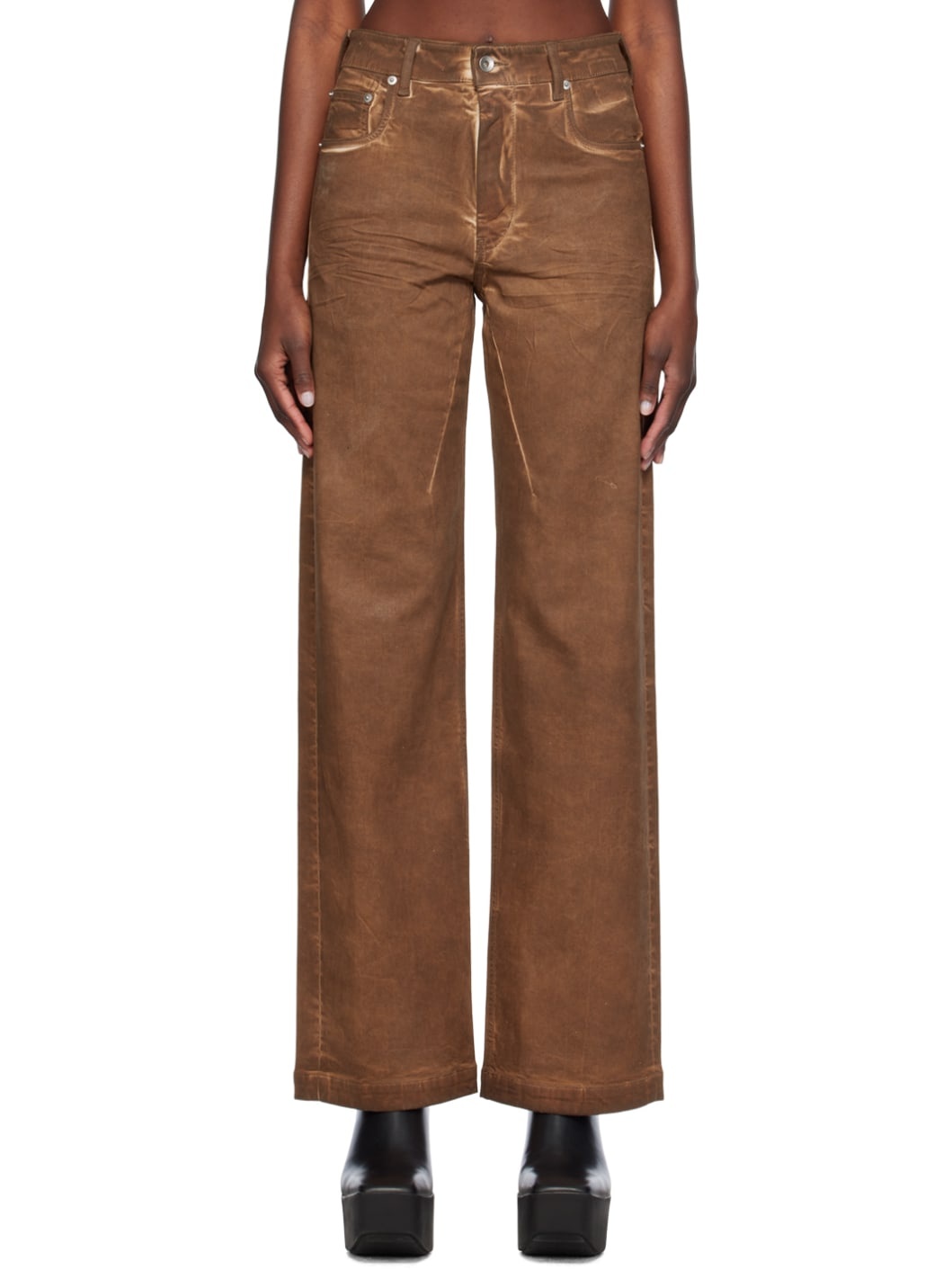Slim-fit and bootcut foil-coated overdyed stretch denim jeans. Fading and whiskering throughout. · ZDHC certified · High-rise · Belt loops · Five-pocket styling · Darts at inseam Supplier color: Henna brown Body: 90% cotton, 7% polyester, 3% rubber. Lining: 100% cotton. Made in Italy 241126F069009