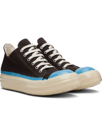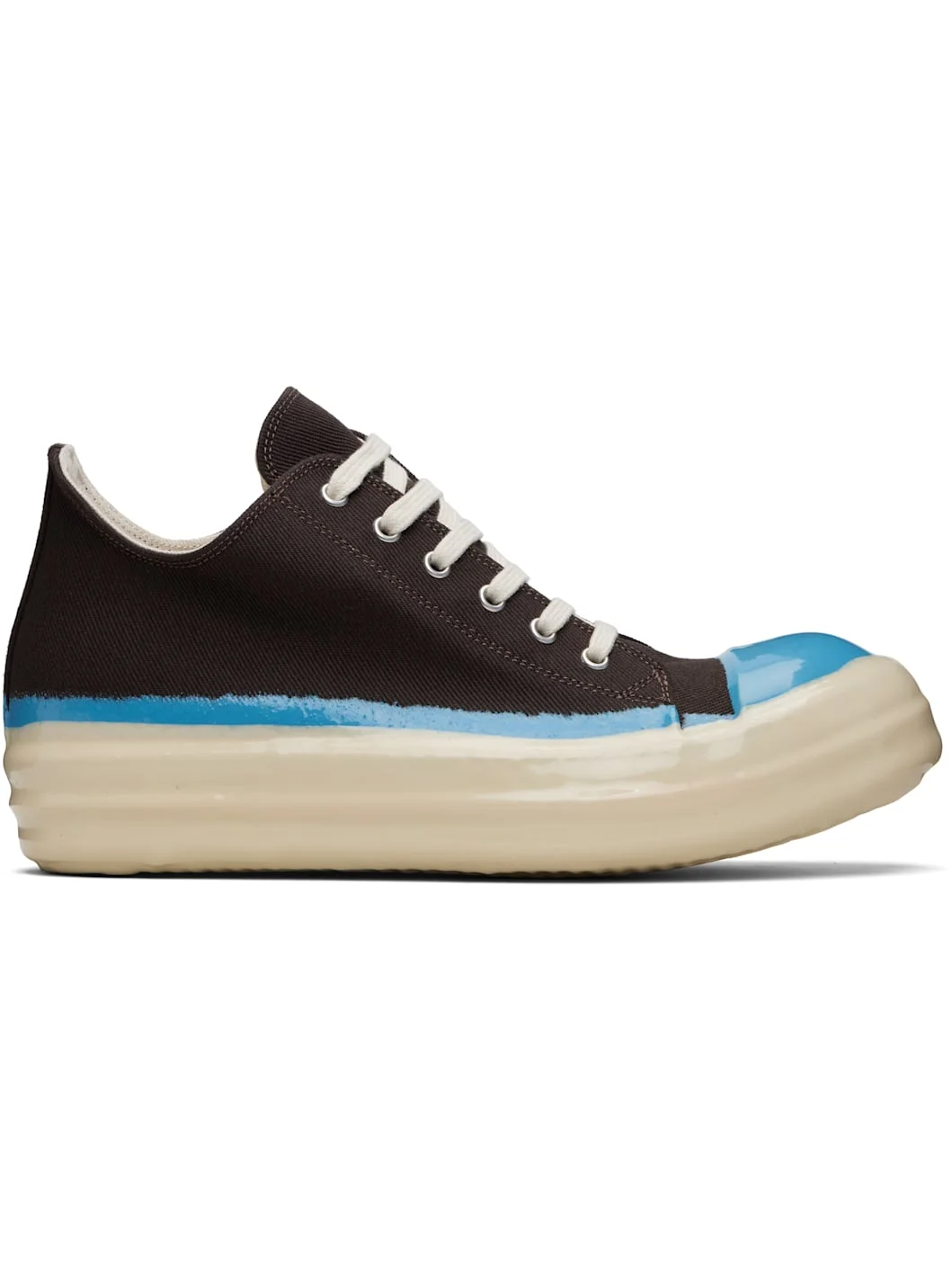 Low-top overdyed 13 oz non-stretch organic cotton denim sneakers. · GOTS-certified organic cotton · Hand-dipped rubber coating at toe and welt · Lace-up closure · Grommets at inner side · Treaded rubber sole Supplier color: Dark dust/Blue/Light beige Upper: organic cotton, silicone. Sole: rubber. Made in Italy 252126M237029