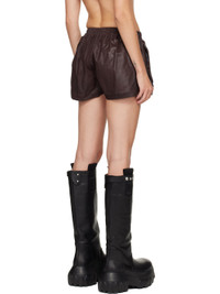 Waxed stretch denim shorts. · Drawstring at elasticized waistband · Two-pocket styling · Mock fly · Exposed pocket lining at vented cuffs Supplier color: Scab wax Body: 90% cotton, 7% polyester, 3% rubber fibre. Lining: 84% polyamide, 16% elastane. Made in Italy 252126F088000