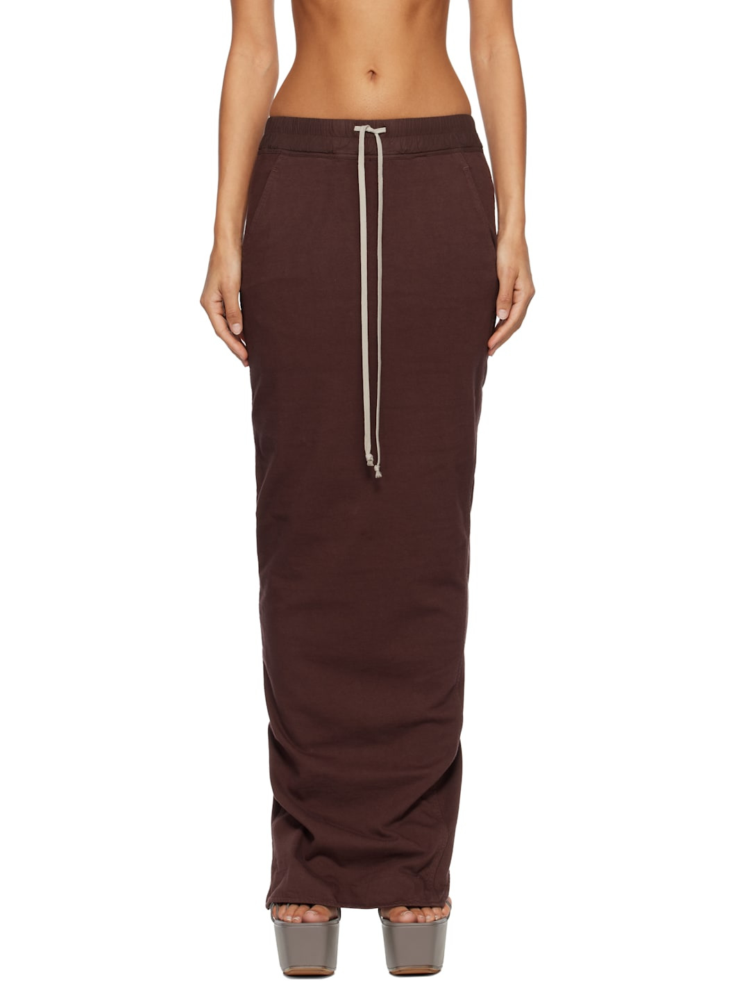 Heavyweight GOTS-certified organic cotton jersey maxi skirt. · Garment-dyed · Drawstring at elasticized waistband · Two-pocket styling · Slit at back hem Supplier color: Scab 100% organic cotton. Made in Italy 252126F093004