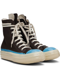 High-top twill sneakers. · Rubber cap toe · Wraparound lace-up closure · Zip closure and metal eyelets at inner side · Treaded rubber sole Supplier color: Dark dust/Blue/Light beige Upper: textile. Sole: rubber. Made in Italy 252126M236029