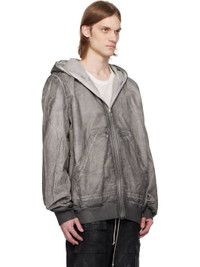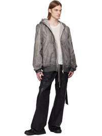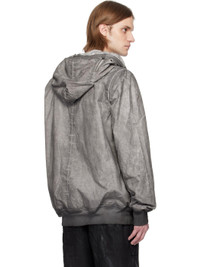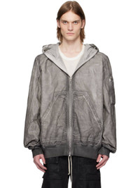 Insulated lightweight GOTS-certified organic cotton poplin bomber jacket. Fading throughout. · Foil-coated and garment-dyed · Vents and metal eyelets at hood · Zip closure extends to hood · Patch pockets · Rib-knit hem and cuffs · Utility pocket at sleeve · Welt pockets and logo-woven webbing strap at interior · Full poplin and satin lining Each item is unique. Please note that coloration and finishings may vary. Supplier color: Dark dust Body: 100% organic cotton. Trim: 98% cotton, 2% elastane. Fill: 100% polyester. Lining 1: 100% cotton. Lining 2: 100% polyamide. Made in Italy 251126M175001