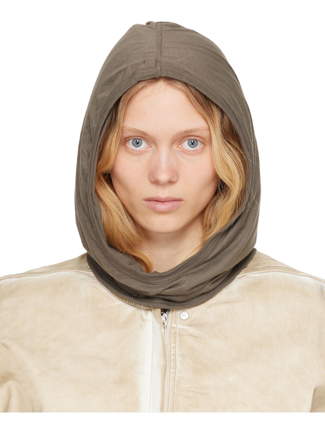 Lightweight GOTS-certified organic cotton jersey hood in gray. · Garment-dyed · Jersey lining Supplier color: Dust 100% organic cotton. Made in Italy 251126F097040