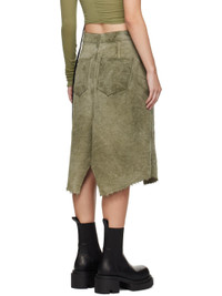 Garment-dyed GOTS-certified organic cotton moleskin midi skirt. · Belt loops · Four-pocket styling · Zip-fly · Central vent at front and back · Raw edge at asymmetric hem Supplier color: Sage 100% organic cotton. Made in Italy 242126F092004
