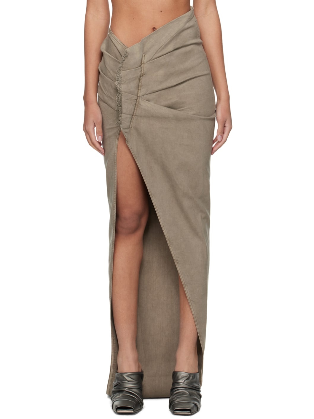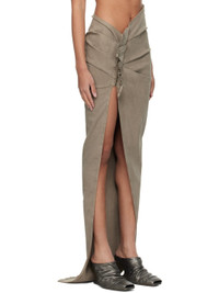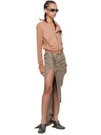 Lightweight ZDHC-certified overdyed coated stretch denim skirt. Gathering, raw edges, and draping throughout. · Zip closure · Ruffled trim at front · Vented hem Supplier color: Pearl 90% cotton, 7% polyester, 3% rubber. Made in Italy 241126F093004