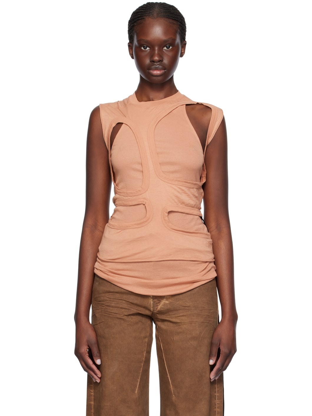 Organic cotton gauze jersey tank top. Cutouts throughout. · Crewneck · Rolled edge at hem · Central seam at back · Integrated logo-woven webbing strap at interior Supplier color: Dark pink 100% organic cotton. Made in Italy 241126F111006