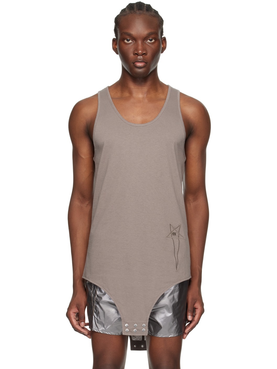 GOTS-certified organic cotton jersey bodysuit-style tank top. · Scoop neck · Logo embroidered at front · Press-stud fastening at bottom · Central seam at back · Embroidered logo patch at back hem Part of the Rick Owens x Champion collaboration. Supplier color: Dust 100% organic cotton. Made in Italy 242232M214001