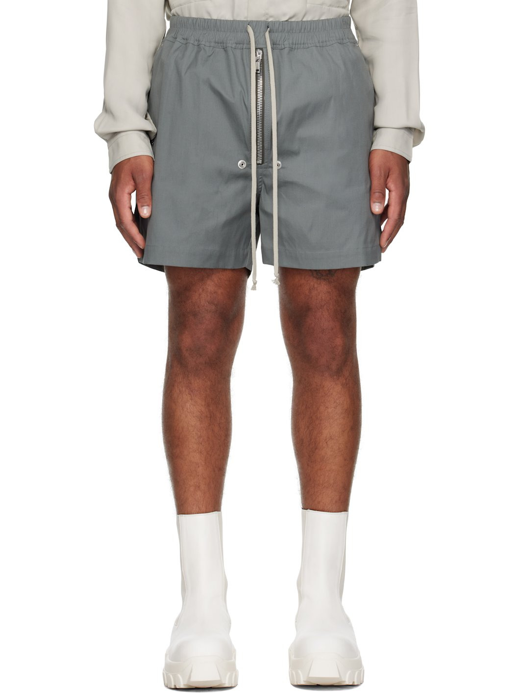 Stretch organic cotton poplin shorts. · GOTS-certified organic cotton · Drawstring at elasticized waistband · Exposed zip fly · Two-pocket styling · Studs, rivets, and grommets at front · Vented side seams Supplier color: Washed indigo 97% organic cotton, 3% elastane. Made in Moldova 252232M193026