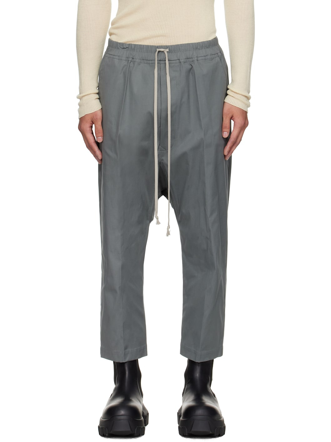 Stretch cotton canvas trousers. · Drawstring at elasticized waistband · Four-pocket styling · Button fly · Gusset at dropped inseam · Cropped leg Supplier color: Washed indigo 97% cotton, 3% elastane. Made in Moldova 252232M191047