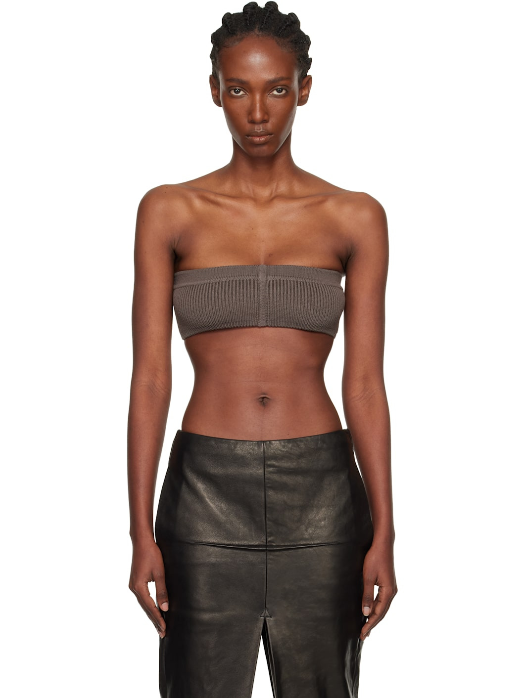 Rib-knit stretch virgin wool-blend bandeau-style top. Supplier color: Dark dust 97% virgin wool, 2% nylon, 1% elastane. Made in Italy 252232F111020