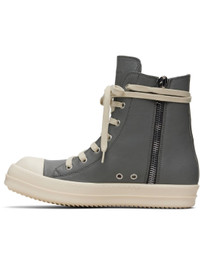 High-top LWG-certified buffed leather sneakers. · Calfskin cap toe · Lace-up closure · Zip closure and metal eyelets at inner side · Buffed calfskin lining · Treaded rubber sole Supplier color: Washed indigo/Milk/Milk Upper: leather. Sole: rubber. Made in Italy 252232M236052