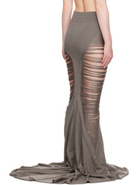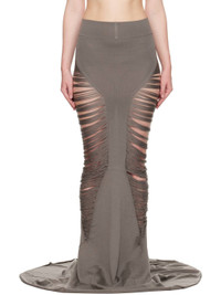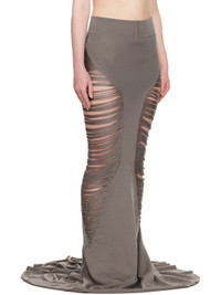 Semi-sheer knit virgin wool maxi skirt. Laddering and rolled edges throughout. · Elasticized waistband · Godet panel at back hem Supplier color: Dust 100% virgin wool. Made in Italy 251232F093047