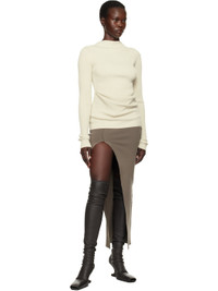 Knit stretch EcoVero™ viscose-blend midi skirt. Exposed seam and raw edges throughout. · Paneled construction · Slit at front hem · Central garter stitch at back Supplier color: Dust 63% viscose, 27% polyester, 7% polyamide, 3% elastane. Made in Italy 251232F092007
