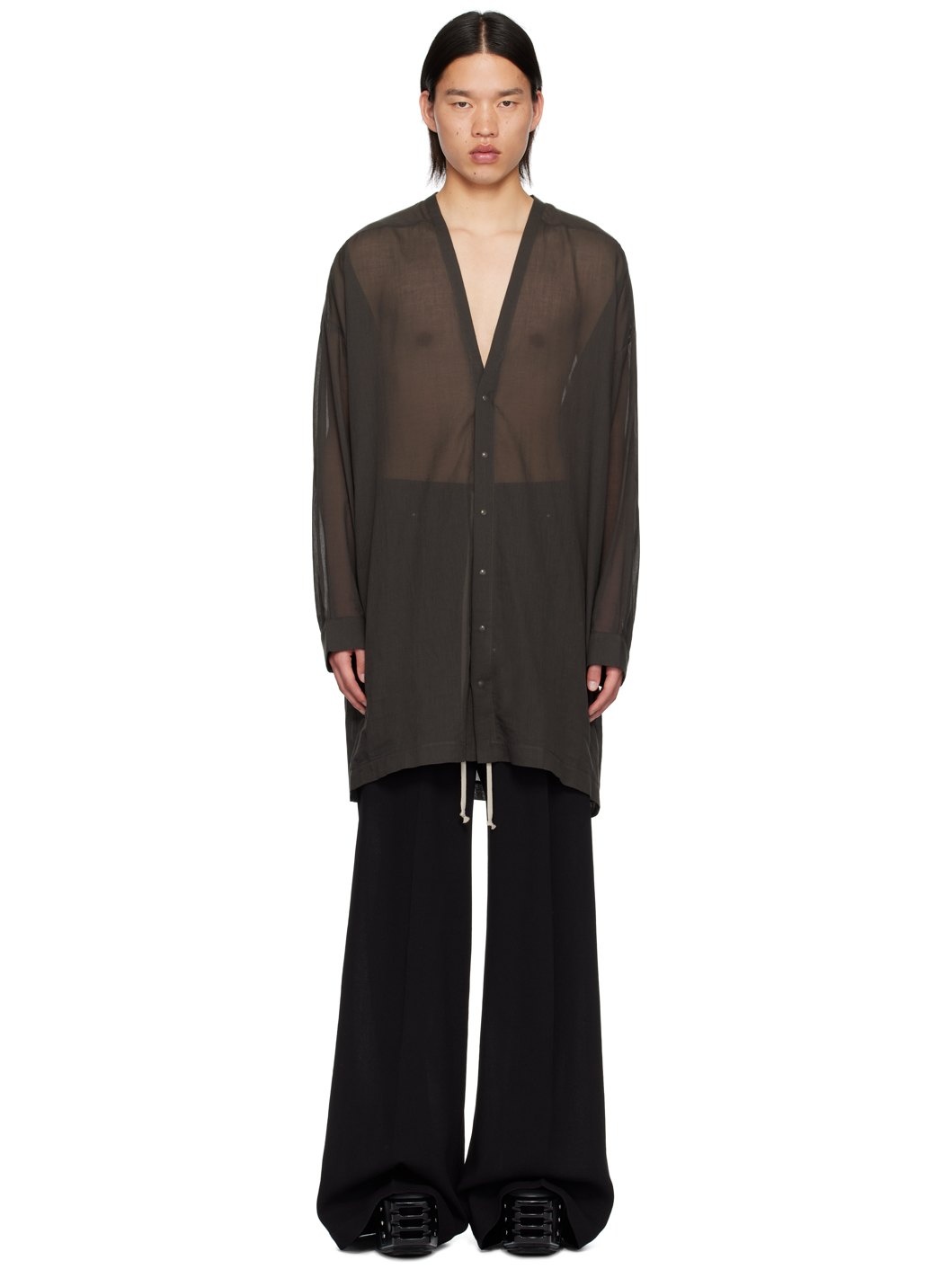 Semi-sheer cotton gauze shirt. · Y-neck · Concealed button closure · Dropped shoulders · Concealed single-button barrel cuffs Supplier color: Dark dust 100% cotton. Made in Italy 242232M192003