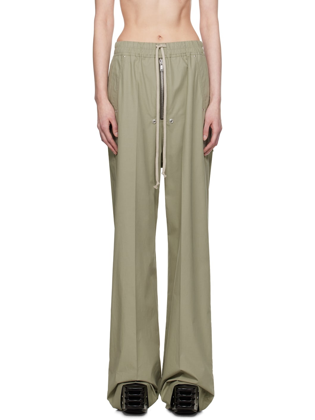 Wide-leg cotton poplin lounge pants. · Drawstring at elasticized waistband · Four-pocket styling · Exposed zip fly · Eyelets, rivets, and press-stud hardware at front · Creased legs Supplier color: Celadon 100% cotton. Made in Italy 251232F086007