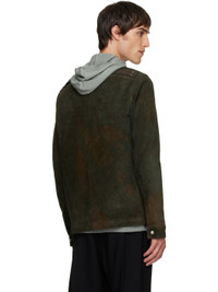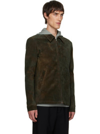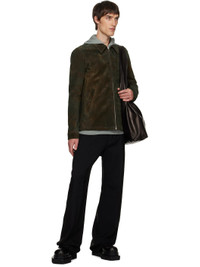 Waxed calfskin suede jacket. · LWG-certified calfskin · Indigo-dyed · Smudging throughout · Spread collar · Zip closure · Welt pockets at waist · Adjustable press-stud barrel cuffs · Riveted webbing strap at back · Zip pockets at interior · Full twill lining Supplier color: Indigo Body: 100% calfskin. Lining 1: 100% cotton. Lining 2: 100% cupro. Made in Moldova 252232M181017