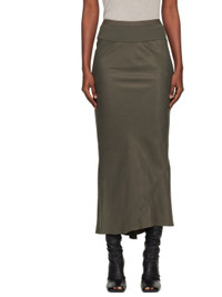 Washed cupro satin midi skirt. · Bias-cut · Rib-knit elasticized waistband · Draping at back hem Supplier color: Green Body: 100% cupro. Trim: 65% cotton, 35% polyamide. Made in Italy 252232F092004