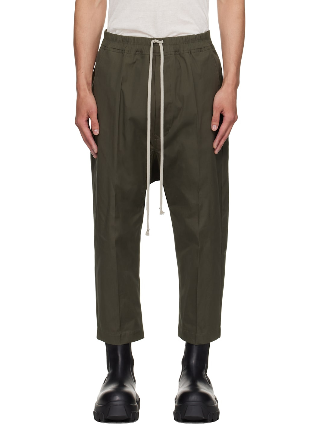 Stretch cotton canvas trousers. · Drawstring at elasticized waistband · Four-pocket styling · Button fly · Gusset at dropped inseam · Cropped leg Supplier color: Bosco 97% cotton, 3% elastane. Made in Moldova 252232M191045