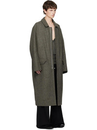 Brushed virgin wool melton coat. · Heavyweight · Spread collar · Zip closure · Flap pockets at front · Seam pockets at waist · Central vent at back hem · Zip pockets at interior · Full twill lining · Buffalo horn hardware Supplier color: Green Body: 100% virgin wool. Lining: 100% cupro. Pocket lining: 100% cotton. Made in Italy 252232M176012