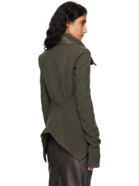 Boiled virgin wool drill jacket. · RWS-certified virgin wool · Funnel neck · Offset zip closure · Zip pockets at waist · Rib-knit gusset at sleeves · Vented handkerchief back hem · Fully lined Supplier color: Bosco Body: 100% virgin wool. Trim: 100% virgin wool. Lining 1: 100% cupro. Lining 2: 100% cotton. Made in Italy 252232F064012