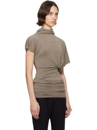 Stretch FSC®-certified viscose-blend jersey T-shirt. · Asymmetrical draped construction · Cowl neck · Gathering at side seam · Cutout at back collar Supplier color: Dust 78% viscose, 17% polyamide, 5% elastane. Made in Italy 251039F110031