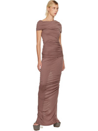 Semi-sheer stretch viscose-blend crepe jersey maxi skirt. · Elasticized waistband · Raw edge at hem · Ruching at back · Central slit at back hem Supplier color: Mauve 100% viscose. Made in Italy 252039F093005