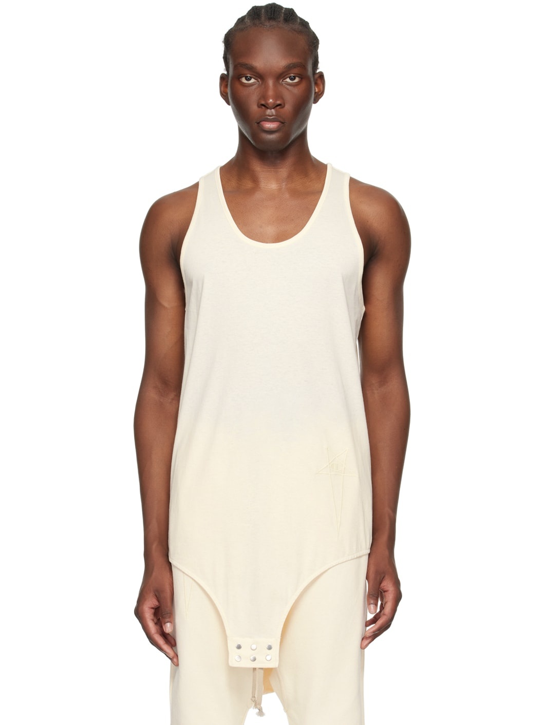 GOTS-certified organic cotton jersey bodysuit-style tank top. · Scoop neck · Logo embroidered at front · Press-stud fastening at bottom · Central seam at back · Embroidered logo patch at back hem Part of the Rick Owens x Champion collaboration. Supplier color: Natural 100% organic cotton. Made in Italy 242232M214002