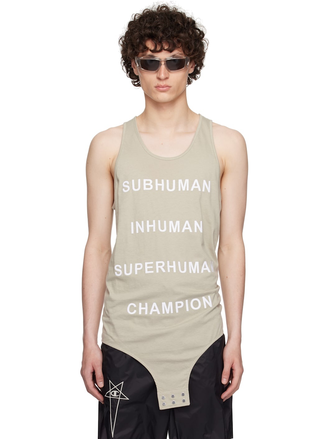 GOTS-certified organic cotton jersey tank top. · Scoop neck · Text and logo embroidered at front · Press-stud fastening at bottom · Central seam at back · Embroidered logo patch at back hem Part of the Rick Owens x Champion collaboration. Supplier color: Pearl 100% organic cotton. Made in Italy 252232M214002