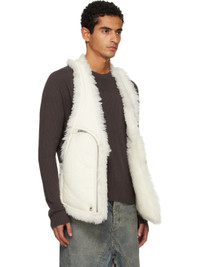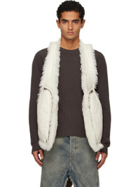 Grained calfskin vest. · Open front · Zip and seam pockets at front · Racer back · Shearling interior · Silver-tone hardware Supplier color: Milk Body: 100% lambskin. Trim 1: 100% leather. Trim 2: 100% cotton. Made in Moldova 252232M179003