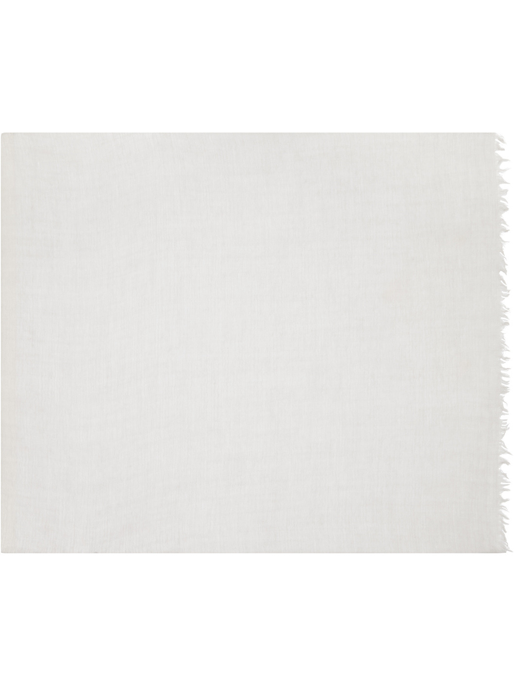 Rectangular knit virgin wool- and silk-blend scarf. · Frayed edge at ends · L79"x W55" Supplier color: Pearl 41% virgin wool, 30% silk, 29% cashmere. Made in Italy 252232M150006