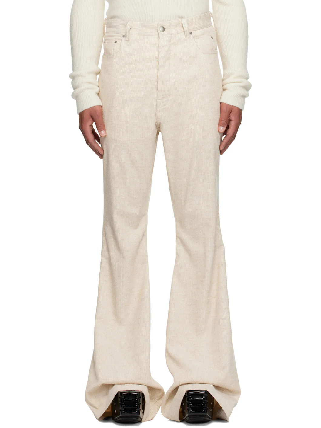 Organic cotton- and linen-blend corduroy trousers. · GOTS-certified organic cotton · Wide-leg · Low-rise · Belt loops · Five-pocket styling · Button fly · Creased legs · Darts at inseam · Silver-tone hardware Supplier color: Natural 74% cotton, 26% linen. Made in Italy 252232M191018