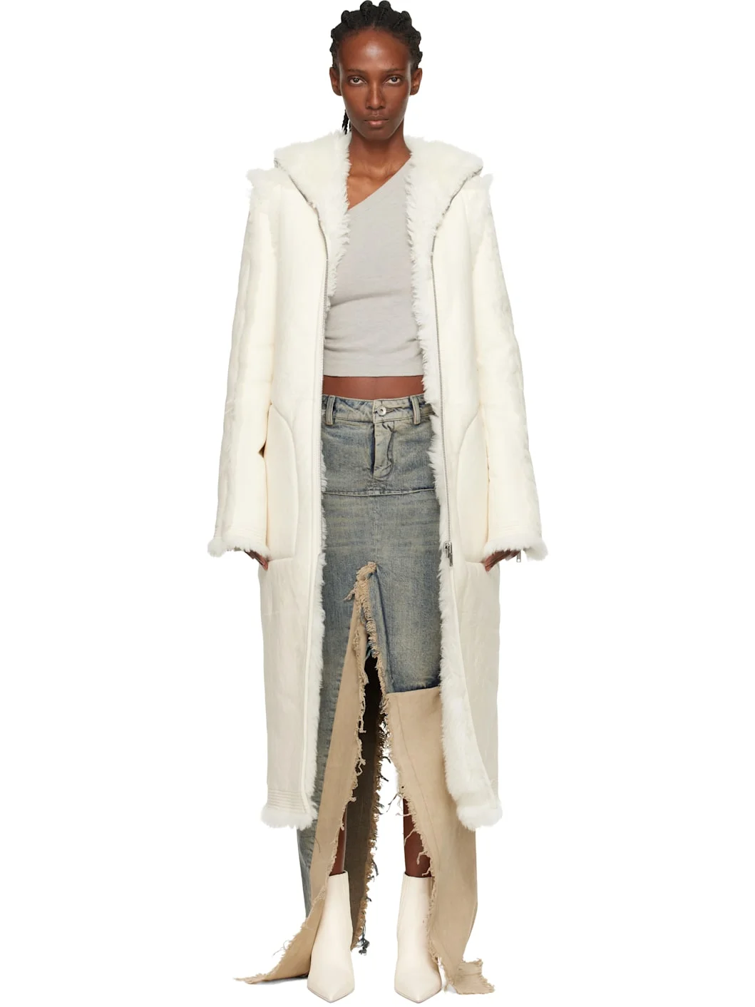 Reversible grained lambskin coat. Reverse in off-white shearling. · LWG-certified lambskin · Shearling trim throughout · Zip closure extends to hood · Welt pockets at waist · Vent at front and back hem · Zip vent at cuffs · Silver-tone hardware Supplier color: Milk Body: 100% lambskin. Trim 1: 100% calfskin. Trim 2: 100% cotton. Made in Moldova 252232F059001