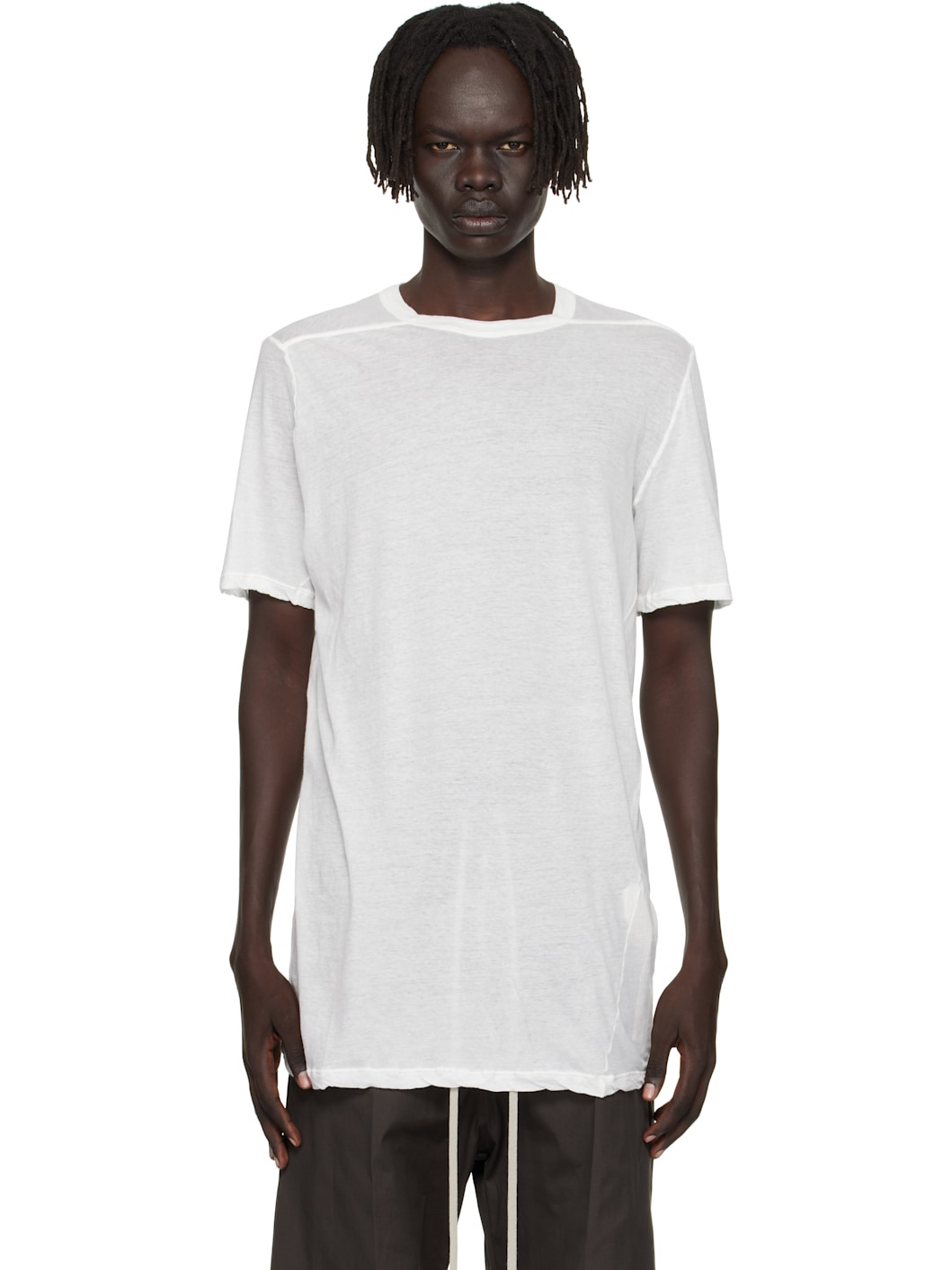 Semi-sheer organic cotton jersey T-shirt. · GOTS-certified organic cotton · Rib-knit crewneck · Twisted side seams · Offset seam at shoulders Supplier color: Milk 100% organic cotton. Made in Italy 252232M213097