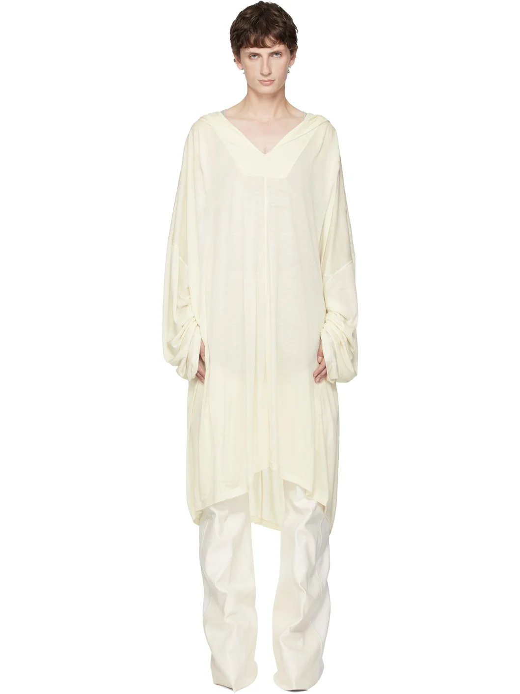 Semi-sheer virgin wool- and silk-blend jersey jacket. · RWS-certified virgin wool · Plunging V-neck · Dropped shoulders · Gathering at extended cuffs Supplier color: Natural Body: 70% virgin wool, 30% silk. Made in Italy 252232M176016