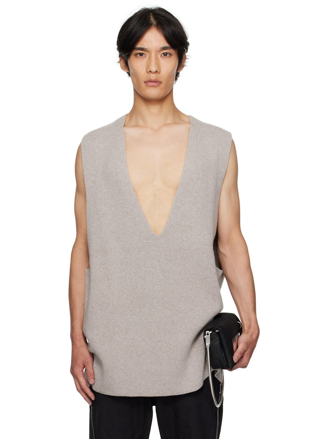 Double-faced knit cashmere-blend sweater vest. · Nepped yarns throughout · V-neck · Central reverse-knit seam at back Supplier color: Pearl 97% cashmere, 3% wool. Made in Italy 252232M206006