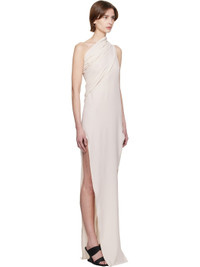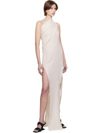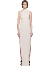 Acetate- and silk-blend crepe maxi dress. · Single-shoulder construction · Draping at asymmetric neck · Raw edges at hem · Slit at sides · Central garter-stitch stripe back Supplier color: Dinge 64% acetate, 36% silk. Made in Italy 251232F055020