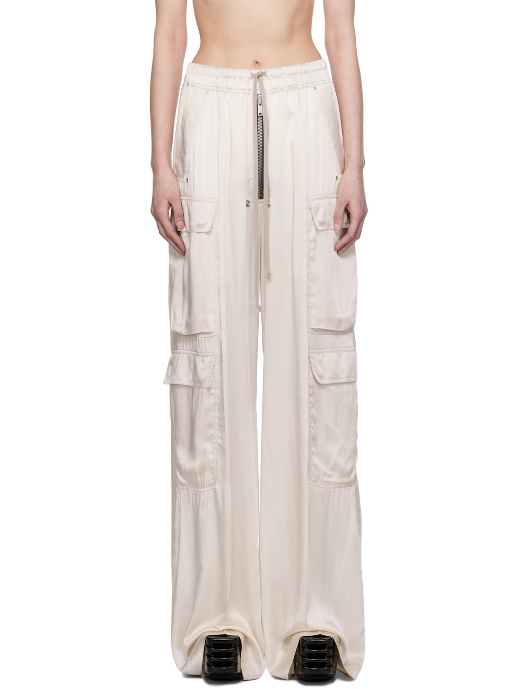 Lightweight acetate- and viscose-blend charmeuse trousers. · Wide-leg · Drawstring at elasticized waistband · Four-pocket styling · Exposed zip-fly · Rivets, eyelets, and press-stud hardware at front · Dropped inseam · Cargo pockets at outseams Supplier color: Dinge 61% acetate, 39% viscose. Made in Italy 251232F087003