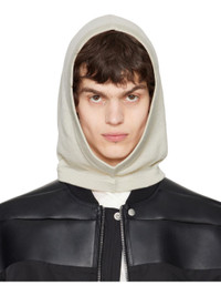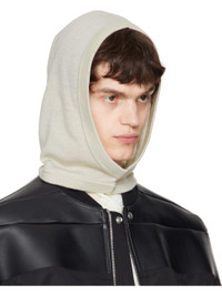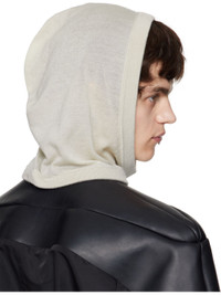 Brushed knit cashmere hood in off-white. · Lightweight · Rib-knit edge at face and collar Supplier color: Dinge 100% cashmere. Made in Italy 251232M138016